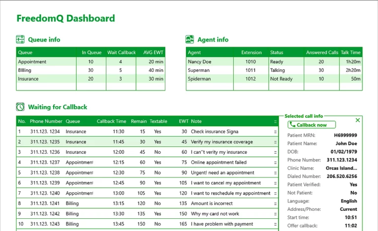 FreedomQ is automated callback and virtual queuing software that preserves a caller’s position in queue and schedules callbacks either automatically or manually.