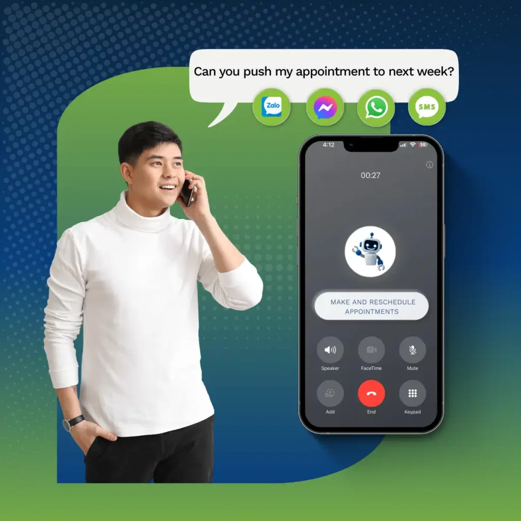 We deploy an automated appointment coordinating system that integrates securely with your Hospital Information System (HIS/EHR). VoiceBot can automatically call reminder, allowing patients to confirm or reschedule right on the call. The whole process is designed to ensure absolute compliance with medical data security standards.